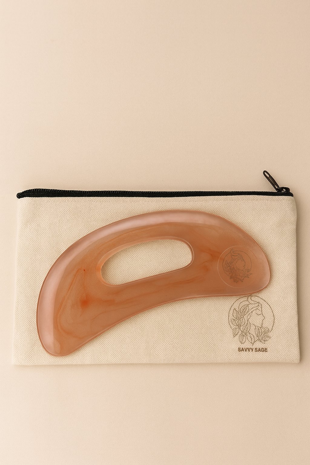 Hold the gua sha at a 15° angle and gently glide along your body in upward and outward strokes.